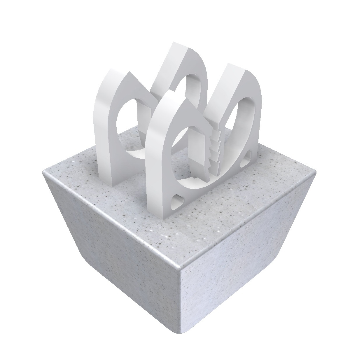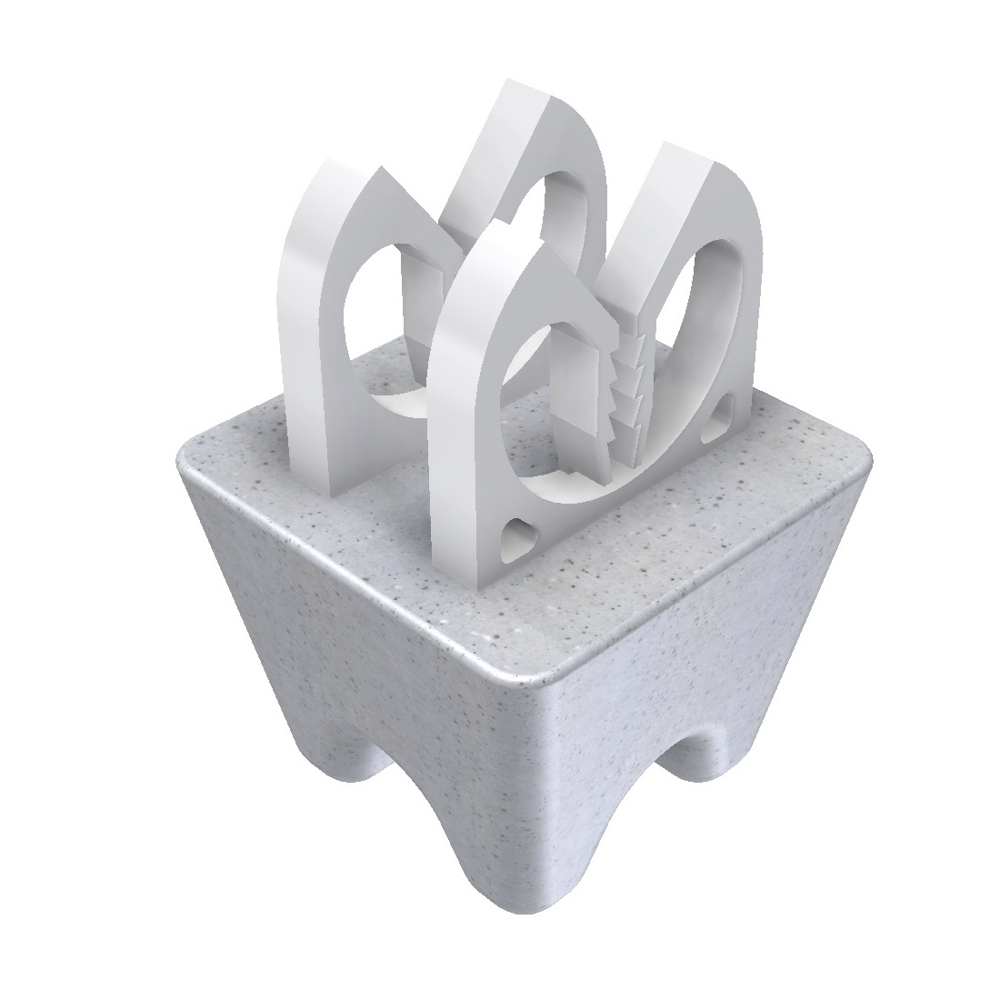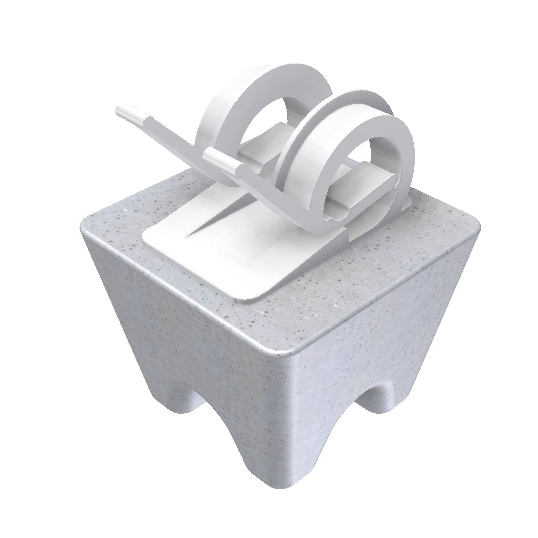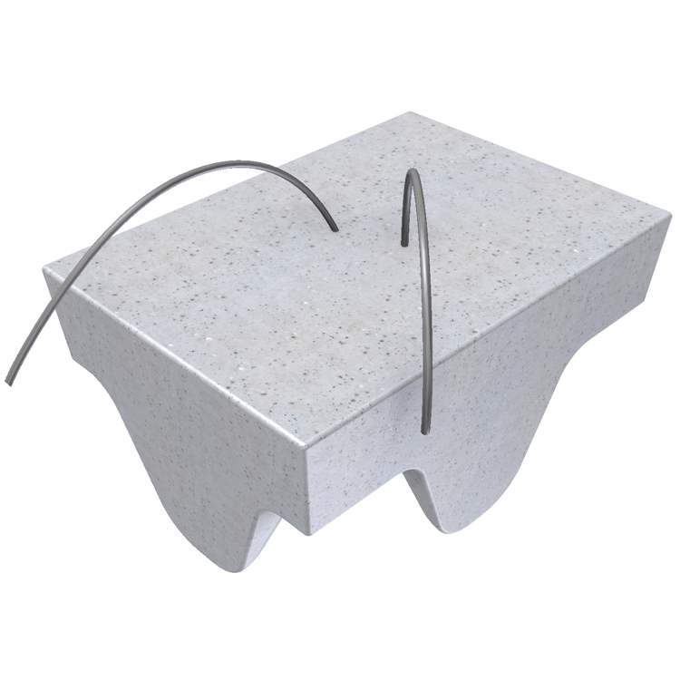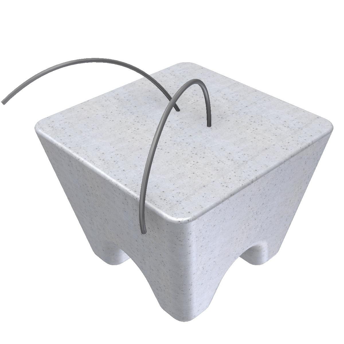 - Cementgebonden afstandhouders (betonblokjes) geven dekking op of onder het betonstaal in de bekistingsmal.