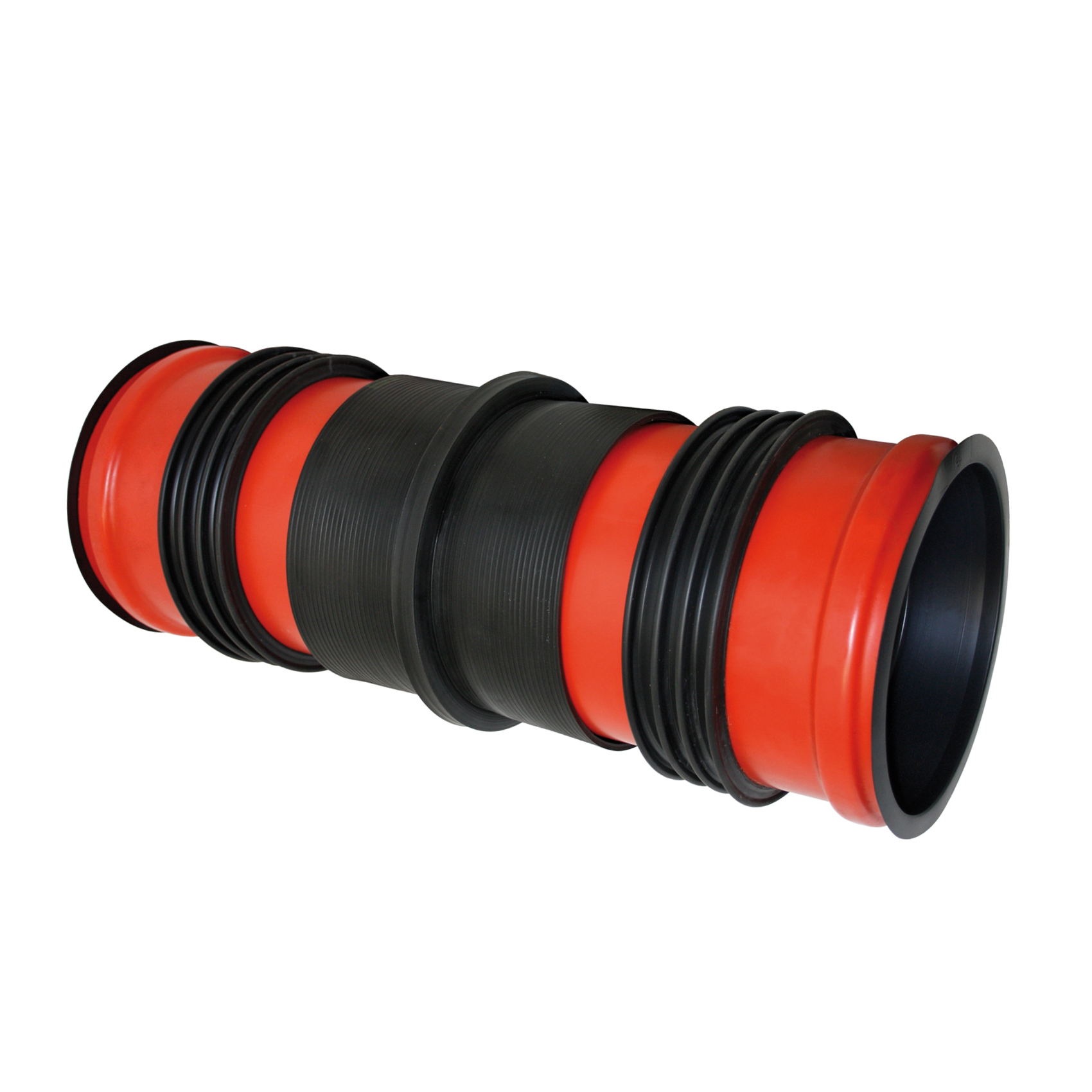 - Een waterdichte aansluiting (ook bij permanente waterdruk) door de viervoudige geribde waterkering uit elastomeer.